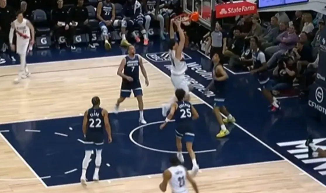 接下来的一个进攻回合,杨瀚森的队友持球突破上篮,但是没有命中,此时杨瀚森跟进完成了补扣,还是很提振士气的。全场比赛,杨瀚森就打了4分47秒,1投1中拿到了2分1篮板1抢断的数据,开拓者队以109比133惨败给了森林狼队,目前以26胜29负排名西部第10,还是有季后赛的机会。